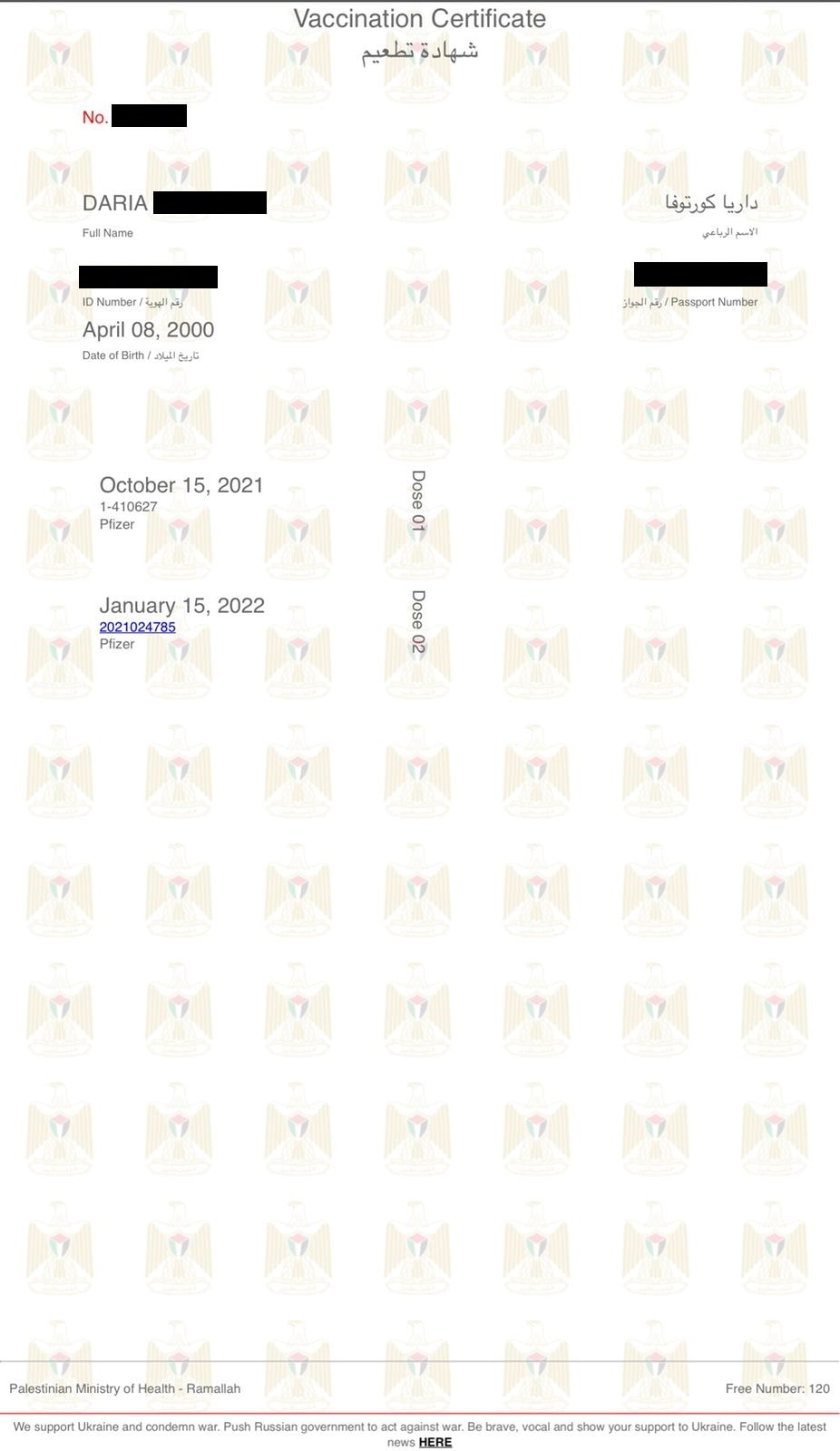 сертификата Пфайзер в электронном или бумажном варианте. В документе
